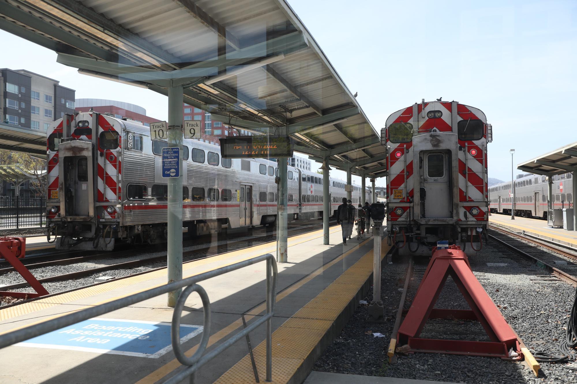 2022年4月4日,在美国加利福尼亚州旧金山,乘客准备登上火车。新华社发(刘艺霖摄)据已提起的刑事诉讼,今年1月13日,一列货运火车行驶至亚利桑那州一处偏远地区时,作案者切断火车气压制动软管,盗走1900双全新耐克运动鞋,总价逾44万美元。被盗鞋中不少是定于3月14日公开出售的新款。