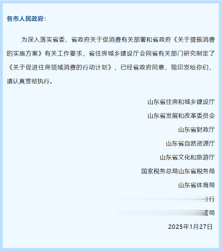 近日,山东省住房和城乡建设厅、山东省发展和改革委员会等九部门联合印发《关于促进住房领域消费的行动计划》。计划共推出六大方面二十条措施促进住房领域消费,具体措施如下: